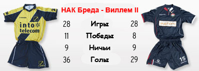 | Статистика встреч: 22-16-19 (76:70) | | Сезон 2012/2013 | | 10.08.2012 Виллем II - НАК Бреда - 1:1 | | | | Сезон 2010/2011 | | 15.05.2011 Виллем II - НАК Бреда - 0:1 | | 26.09.2010 НАК Бреда - Виллем II - 2:1 | | | | Сезон 2009/2010 | | 05.02.2010 Виллем II - НАК Бреда - 1:2 | | 08.11.2009 НАК Бреда - Виллем II - 4:0 | | | | Сезон 2008/2009 | | 05.04.2009 Виллем II - НАК Бреда - 2:0 | | 14.09.2008 НАК Бреда - Виллем II - 1:3 | | | | Сезон 2007/2008 | | 19.01.2008 НАК Бреда - Виллем II - 1:0 | | 21.10.2007 Виллем II - НАК Бреда - 0:0 | | | | Сезон 2006/2007 | | 14.01.2007 Виллем II - НАК Бреда - 0:2 | | 22.09.2006 НАК Бреда - Виллем II - 0:0 | |
