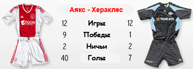 | Статистика встреч: 18-4-3 (74:19) | | Сезон 2012/2013 | | 20.10.2012 Хераклес - Аякс - 3:3 | | | | Сезон 2011/2012 | | 01.04.2012 Аякс - Хераклес - 6:0 | | 10.09.2011 Хераклес - Аякс - 2:3 | | | | Сезон 2010/2011 | | 03.04.2011 Аякс - Хераклес - 3:0 | | 30.10.2010 Хераклес - Аякс - 1:4 | | | | Сезон 2009/2010 | | 18.04.2010 Аякс - Хераклес - 4:0 | | 30.08.2009 Хераклес - Аякс - 0:3 | | | | Сезон 2008/2009 | | 03.02.2009 Аякс - Хераклес - 2:2 | | 29.10.2008 Хераклес - Аякс - 1:3 | | | | Сезон 2007/2008 | | 20.04.2008 Аякс - Хераклес - 5:1 | | 15.09.2007 Хераклес - Аякс - 0:1 | | | | Сезон 2006/2007 | | 01.04.2007 Аякс - Хераклес - 3:0 | | 05.11.2006 Хераклес - Аякс - 0:3 | |