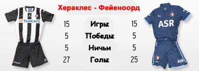 "Фейеноорду" после непростого поединка в Лиге Европы с чешской "Спартой" предстоит не менее сложный выезд в Альмело. Команда Рональда Кумана чудом спаслась от поражения в первом матче 4-го отборочного раунда. Проигрывая по ходу матча со счётом 2:0 роттердамцы сумели найти в себе силы и отыгрались. Впрочем, два мяча пропущенных на своём поле, мягко сказать, не лучший вариант. В чемпионате команда Кумана пока идёт без поражений, имея в активе победу и ничью. Последняя была датирована прошлым туром в матче с "Херенвеном". Что касается "Хераклеса", то альмельцы менее успешны. Пока что в двух турах ни одной победы. Отметим, что "Хераклес" выиграл только один из последних пяти матчей на своем поле. После поражения 3:0 15 сентября 1963 года, "Фейеноорд" ни разу не покидал Альмело без забитого гола. Роттердамцы на протяжении 13-ти матчей не проигрывают. А последнее поражение было 26 февраля этого года от ПСВ. Последний раз "Хераклес" не забивал на своем поле 10-го марта (Хераклес - Ден Хааг 0:2).