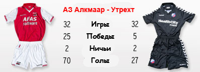 Очень интересным по вывеске выглядит поединок АЗ и "Утрехта". Первые последнее время начали демонстрировать какое-то подобие комбинационного футбола, а вторые вместе с "Витессом" являются чуть ли не самой стабильной командой чемпионата. "Алкмаар" уступив "Аяксу", затем обыграл на выезде "Хераклес" и сыграл вничью с "Неймегеном". "Утрехт" тоже не проигрывает два последних тура после поражения от "Фейеноорда". Но в отличии от АЗ, в этих двух турах набирает максимум очков. Подопечными Яна Воутерса были повержены "Венло" и "Ден Хааг", правда на своём поле. А вот сейчас предстоит выездной поединок. Кстати, "Твенте" свой матч уже выиграл, а потому чтобы не отстать от энсхедцев "Утрехту" тоже надо побеждать. Что касается АЗ, то он продолжает вести битву в нижней части таблицы и всё ещё рискует угодить в зону вылета. Победа в сегодняшнем поединке ой-как нужна команде Гертьяна Вербеека и, пожалуй, нужнее чем "Утрехту". Ведь отрыв в шесть очков от ближайшего конкурента в лице "Роды" куда лучше, чем в три балла.