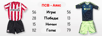 | Статистика встреч: 47-23-43 (190:189) | | Сезон 2012/2013 | | 01.12.2012 Аякс - ПСВ Эйндховен - 3:1 | | | | Сезон 2011/2012 | | 25.03.2012 Аякс - ПСВ Эйндховен - 2:0 | | 18.09.2011 ПСВ Эйндховен - Аякс - 2:2 | | | | Сезон 2010/2011 | | 27.02.2011 ПСВ Эйндховен - Аякс - 0:0 | | 20.11.2010 Аякс - ПСВ Эйндховен - 0:0 | | | | Сезон 2009/2010 | | 14.03.2010 Аякс - ПСВ Эйндховен - 4:1 | | 16.08.2009 ПСВ Эйндховен - Аякс - 4:3 | | | | Сезон 2008/2009 | | 19.04.2009 ПСВ Эйндховен - Аякс - 6:2 | | 16.11.2008 Аякс - ПСВ Эйндховен - 4:1 | | | | Сезон 2007/2008 | | 19.03.2008 ПСВ Эйндховен - Аякс - 0:0 | | 30.01.2008 Аякс - ПСВ Эйндховен - 0:2 | | | | Сезон 2006/2007 | | 18.03.2007 ПСВ Эйндховен - Аякс - 1:5 | | 12.11.2006 Аякс - ПСВ Эйндховен - 0:1 | |