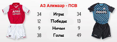 | АЗ АЛКМААР - ПСВ ЭЙНДХОВЕН | 20 апреля. Алкмаар. Стадион "АФАС". 22:45. Судья - Ричард Лайсвельд (Утрехт). | | | Проиграв очную дуэль "Аяксу", ПСВ лишился всяческих надежд на чемпионский титул. И пусть по турнирному раскладу всё ещё может быть, по логике этого не скажешь. Но сезон на этом заканчивать нельзя, ведь впереди ещё четыре тура и борьба за вторую строчку, которая даст право сыграть в Лиге Чемпионов. В общем, ПСВ ещё есть за что бодаться, ведь три последних сезона коллектив из Эйндховена занимал третье место, в следствии чего лишался Лиги Чемпионов. Но всё не так просто, как может показаться, ведь календарь на концовку у ПСВ очень неприятный. И начинается он как раз в Алкмааре, где предстоит сразиться с АЗ. Если взглянуть на турнирную таблицу, то можно смело сказать, что алкмаарцы проходной соперник для ПСВ. Но на самом тебе это не так. Да, безусловно, АЗ провалил вторую часть сезона, причём по всем статьям. Но сейчас этому коллективу уже нечего терять и он играет для своих болельщиков, а вот ПСВ, напротив, получил серьёзный психологический удар в прошлом туре. К тому же, "Алкмаар" в прошлом туре в пух и прах разбил "Утрехт" 6:0, что не могло добавить команде массу положительных эмоций. Кстати, именно эти команды вскоре разыграют Кубок Голландии. Финал состоится 9 мая. С учётом осечки "Аякса" в этом туре, у ПСВ появляется хорошая возможность первым преодолеть барьер 20 побед в нынешнем сезоне. А если за оставшиеся четыре тура удастся забить десять мячей, то в активе подопечных Адвоката будет заветная сотня. Кстати, это было бы весьма любопытно, ведь в 2009-10 сезоне рубеж в сто мячей покорялся "Аяксу", который также не стал чемпионом. Тогда "аяксиды" наколотили целых 106 голов. АЗ естественно будет играть на победу, ведь в первом круге ПСВ разгромил своего нынешнего соперника со счётом 5:1. Да и ещё больше подпортить настроение эйндховенцам наверняка хочется.