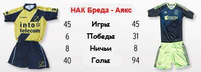 Вторым из лидеров в бой вступит "Аякс", который сыграет против "Бреды" и в случае победы округлит своё количество очков до 70. Красивая цифра, не правда ли? При нынешнем раскладе сил так и должно быть, особенно учитывая результат матча первого круга, когда на "Амстердам Арене" подопечные де Бура добыли разгромную победу 5:0. Особых турнирных задач НАК уже практически не имеет, поэтому единственным стимулом может выступить разве что реванш за унизительное поражение. Но даже в это верится с трудом, с учётом того, что столичная команда хочет уже поскорее оформить титул чемпиона, реабилитировавшись по ходу за потерю очков в прошлом туре, когда амстердамцы потеряли очки в противостоянии с "Херенвеном". Беспроигрышная серия команды Франка де Бура достигла уже одиннадцати (!) матчей. "Бреда" же похвастаться подобным не может. "Крысы" в прошлом туре с крупным счётом и по всем статьям уступили "Утрехту" (3:0). Да и вообще коллектив Небойша Гудель, как уже отмечалось, не решает никаких турнирных задач и просто доигрывает сезон. Насолить лидеру это всегда приятно, но для этого надо вылезти из кожи вон. Определённые шансы есть, ведь сыграть предстоит на своём поле. Но максимум на что могут рассчитывать "крысы" - это ничья. И то при полном попустительстве столичной команды.