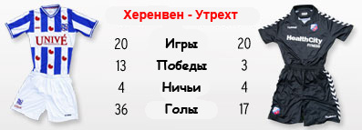 | Статистика встреч: 19-11-11 (66:52) | | Сезон 2012/2013 | | 16.12.2012 Утрехт - Херенвен - 3:1 | | | | Сезон 2011/2012 | | 28.01.2012 Херенвен - Утрехт - 2:0 | | 22.10.2011 Утрехт - Херенвен - 1:4 | | | | Сезон 2010/2011 | | 15.04.2011 Херенвен - Утрехт - 3:0 | | 05.12.2010 Утрехт - Херенвен - 2:1 | | | | Сезон 2009/2010 | | 06.02.2010 Херенвен - Утрехт - 2:0 | | 08.11.2009 Утрехт - Херенвен - 2:3 | | | | Сезон 2008/2009 | | 19.04.2009 Утрехт - Херенвен - 2:1 | | 15.11.2008 Херенвен - Утрехт - 3:2 | | | | Сезон 2007/2008 | | 13.01.2008 Утрехт - Херенвен - 2:2 | | 23.09.2007 Херенвен - Утрехт - 2:3 | | | | Сезон 2006/2007 | | 30.12.2006 Херенвен - Утрехт - 0:0 | | 24.09.2006 Утрехт - Херенвен - 1:0 | |