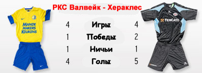 | Статистика встреч: 2-3-3 (9:11) | | Сезон 2011/2012 | | 15.04.2012 Хераклес - РКС Валвейк - 1:1 | | 06.08.2011 РКС Валвейк - Хераклес - 2:2 | | | | Сезон 2009/2010 | | 10.02.2007 Хераклес - РКС Валвейк - 4:1 | | 25.10.2006 РКС Валвейк - Хераклес - 0:1 | | | | Сезон 2006/2007 | | 10.02.2007 РКС Валвейк - Хераклес - 2:0 | | 25.10.2006 Хераклес - РКС Валвейк - 1:1 | | | | Сезон 2005/2006 | | 08.04.2006 РКС Валвейк - Хераклес - 0:2 | | 17.09.2005 Хераклес - РКС Валвейк - 0:2 | |