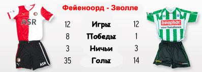 | Статистика встреч: 15-7-2 (63:25) | | Сезон 2003/2004 | | 16.05.2004 Фейеноорд - Зволле - 7:1 | | 28.09.2003 Зволле - Фейеноорд - 0:3 | | | | Сезон 2002/2003 | | 20.04.2003 Зволле - Фейеноорд - 1:3 | | 10.11.2002 Фейеноорд - Зволле - 2:0 | |