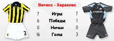 Лишь один из лидеров Эре сыграет свой матч в субботу - это "Витесс". Команда Фреда Рюттена одна из трёх других, не потерпевших пока ни одного поражения. Арнемцы уже успели выиграть у одного из грандов - "Фейеноорда", а в прошлом туре разделались с "Гронингеном" (3:0). Правда тот матч запомнился не столько счётом, сколько невзрачной игрой "Орлов". Ведь атаковал большую часть матча как раз "Гронинген", а забивали в тот вечер другие. Впрочем, это всё из разряда - игра забывается, а результат остаётся. "Хераклес" в прошлом туре наконец-таки одержал первую победу, да ещё к тому же волевую. Но та встреча была на своём поле, а теперь предстоит выезд, да ещё и сложный. В текущем сезоне "Витесс" - самая непробиваемая команда с двумя пропущенными мячами при 74-х нанесенных в створ ворот Вельтхайзена ударах. Нынешний тренер "Хераклеса" Петер Бош начинал в "Витессе" свою футбольную карьеру, отыграв за арнемцев за три сезона в 81-м матче и забив два гола. В последних 16-ти матчах Эредивизии "Витесс" забивал минимум один гол, тогда как "Хераклес" обязательно пропускал хотя бы однажды в последних 14-ти выездных матчах. Рискнём предположить, что "Витесс" потеряет очки во второй раз в сезоне.