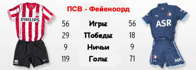 Стоило поклонникам ПСВ немного успокоиться и убедиться (особенно после матча с АЗ), что их команда, наконец, набрала ход, как последовал внезапный и очень болезненный удар обухом по затылку, заставивший протрезветь всех, кого успела накрыть волна эйфории от недолгого успеха. Сначала "Утрехт", а затем и "Днепр" опустили эйндховенцев с небес на землю, поставив команду Дика Адвоката в незавидное положение перед матчем с одним из злейших конкурентов - "Фейеноордом". После трагедии двухлетней давности на "Филипс Стадион", когда роттердамцы получили в свои ворота десять безответных мячей, отношения между командами ещё больше обострились. С тех пор "тараканы" выходили на матчи против ПСВ словно на последние и добивались ощутимых успехов, дважды подряд обыграв "крестьян" в Роттердаме и дав им бой на выезде в феврале этого года. Так что, несмотря на собственные неудачи, подопечные Кумана подойдут к предстоящей встрече с необходимым боевым настроем. К несчастью ПСВ, кризис игровой совпал в команде и с кризисом кадровым. Так, вновь не сможет помочь эйндховенцам опытный Вилфрид Баума, что означает появление в основе, скорее всего, Матиаса Йоргенсена, поскольку игра Тима Дерейка в Днепропетровске вряд ли убедила Адвоката в том, что экс-роттердамец достоин места в старте. Кроме того, под вопросом сейчас и участие в воскресном матче и Джетро Виллемса, у которого по возвращению из Украины обнаружились проблемы с коленом. Главной же потерей для ПСВ стала дисквалификация Марка ван Боммеля, который за пять туров Эре ухитрился набрать полный комплект жёлтых карточек и получить автоматический бан на одну игру. Его место, что уже подтвердил Адвокат, достанется Жоржиньо Вейналдуму, у которого в этом сезоне было не так уж много шансов доказать тренеру, что он достоин места в основе. Лучшей возможности сделать это, как не в матче против бывшего клуба у хава может и не быть. Вполне логично будет ожидать и возвращения в стартовый состав Тима Матавжа, без которого атака эйндховенцев смотрелась весьма бедно в мид-уик. Ола Тойвонен, Дрис Мертенс и Джермейн Ленс должны составить привычное трио атакующих хавов и оказать словенскому наконечнику мощную поддержку. У "Фейеноорда", как и у ПСВ, серьезных потерь также две - по-прежнему в лазарете остаются защитник и капитан Стефан де Врей, а также вратарь Эрвин Мюлдер. Замена обоим, впрочем, уже найдена. Как и против "Зволле", место в воротах "Фейе" должен занять грек Лампру, а в центре защиты снова стоит ожидать появления сладкой парочки Мартинс Инди - Матейсен. Имеются при этом и приятные новости для поклонников роттердамского гранда, поскольку на неделе возобновил тренировки Лекс Иммерс, и вполне можно ожидать его выхода с первых минут. Что касается линии атаки, то сюрпризов здесь ожидать вряд ли стоит. Несмотря на кредит доверия, который Рональд Куман выдал Грациано Пелле и Весли Верхуку на прошлой неделе, скорее всего, наставник "Фейе" вернется к схеме с двумя нападающими, а в центре поля снова появится Келвин Леердам, что расширит для роттердамцев возможности для маневров по ходу матча.