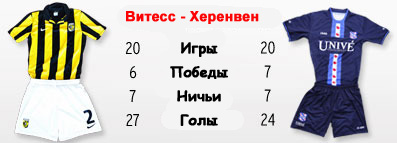 | Статистика встреч: 11-14-15 (52:57) | | Сезон 2011/2012 | | 21.04.2012 Херенвен - Витесс - 1:1 | | 01.10.2011 Витесс - Херенвен - 1:1 | | | | Сезон 2010/2011 | | 12.03.2011 Витесс - Херенвен - 1:1 | | 11.09.2010 Херенвен - Витесс - 2:1 | | | | Сезон 2009/2010 | | 14.03.2010 Витесс - Херенвен - 0:1 | | 15.08.2009 Херенвен - Витесс - 1:0 | | | | Сезон 2008/2009 | | 03.02.2009 Витесс - Херенвен - 1:0 | | 29.10.2008 Херенвен - Витесс - 0:2 | | | | Сезон 2007/2008 | | 02.02.2008 Херенвен - Витесс - 7:0 | | 11.11.2007 Витесс - Херенвен - 0:1 | | | | Сезон 2006/2007 | | 10.02.2007 Херенвен - Витесс - 0:0 | | 29.11.2006 Витесс - Херенвен - 1:3 | |