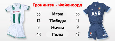 В турнирной таблице этих команд разделяют всего три очка. Именно такое преимущество у "Фейе" перед матчем с "Гронингеном". Здесь на "Еуроборге" в прошлом сезоне "Фейеноорд" потерпел сокрушительное поражение 6:0 и вряд ли этого забыли футболисты и болельщики роттердамцев. "Северяне" начали сезон ужасно, однако в последних двух турах отпраздновали победы над "Зволле" и "Родой", а потому идут в середине таблицы. Что касается "Фейеноорда", то после крупного поражения от ПСВ, подопечные Рональда Кумана реабилитировались, унизив НЕК (5:1). Примечательно, что наконец-то начали забивать Пелле и Иммерс. Первый оформил дубль, а второй "хет-трик". Интересно, что наставник роттердамцев Рональд Куман поиграл в качестве игрока за разные команды, но свой профессиональный дебют отметил как раз в "Гронингене". Это было 21 сентября 1980 в матче с НЕКом, тогда "Северяне" победили 2:0, а Куман вышел на замену за 15 минут до конца матча. Кстати, игроки "Фейеноорда" пока что меньше всех попадали в положение "вне игры" (только семь раз).