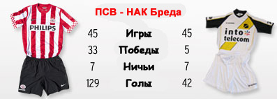 ПСВ в последних матчах только набирает обороты. Команда Дика Адвоката имеет большой потенциал, но не в каждом матче ей удается его реализовать. Например, в Днепропетровске в первом туре группового этапа Лиги Европы клуб из Эйндховена имел немного шансов на успех, уступив "Днепру" со счетом 0:2. Но уже спустя три дня ПСВ громил "Фейеноорд" (3:0) в чемпионате Голландии, еще спустя неделю уничтожил на выезде "ВВВ Венло" (6:0), поднявшись на 3-е место в Эредивизи. А на этой неделе заставил капитулировать ещё и "Наполи". Далеко не последний клуб в Италии, между прочим. Прогресс в игре команды очевиден, не говоря уже о том, что наконец-таки удаётся не пропускать. Но здесь в большинстве своём не только заслуга защитников, которых пока вряд ли можно назвать надёжными, в первую очередь центральную ось. Большой объём работы выполняют полузащитники, ПСВ больше нацелен на атаку, включая высокий прессинг и стараясь не доводить дело до своих ворот. В этом туре команда Адвоката предстоит сыграть на родном "Филипсе" против не самой сильной команды. НАК после победы "Виллема" откатился в зону вылета и рискует там остаться по окончанию семи туров. Небольшой всплеск был, когда команда Карелсе обыграла АЗ, но в тот момент она праздновала столетие клуба. Затем последовало поражение от "Херенвена". В общем, о стабильности говорить не приходится. Непонятно за счёт чего сегодня "Бреда" сумеет отвоевать хотя бы очко. Возможно за счёт настроя? Если ПСВ выйдет на матч с должным настроем, то вряд ли что-то светит "крысам". Отметим, что в прошлом сезоне именно после поражения от НАКа пост тренера в ПСВ покинул Фред Рюттен. Насолить НАК способен, а потому расслабляться не стоит.