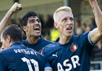 Удивительно похожим на приключения ПСВ получился матч "Фейенорда" против "Венло". Трудностей, с которыми столкнулись роттердамцы, пусть и на поле соперника, вряд ли кто-то всерьез ожидал. Ещё одну параллель между ПСВ и "Фейеноордом" можно провести, если обратить внимание на составы команд. У эйндховенцев не было двух стержневых игроков центра поля. У "Фейе" главные потери случились на флангах атаки. Результат же на выходе получился один - уже к середине первого тайма в воротах обоих грандов побывало по два мяча. Главной проблемой "Фейеноорда" с первых минут стал левый фланг атаки. Закрывший эту позицию Гийон Фернандес совершенно не справлялся со своей работой, и защите особо не помогая, и в нападении никаких дивидендов не принося. В итоге, роттердамцам не удалось со старта встречи надавить на соперника настолько, чтобы заставить его защищаться. "Венло" довольно легко переходил центр поля и раз за разом все ближе подбирался к воротам Лампру. На 19-й минуте хозяева бросили прощать соперника, и Тюрк со штрафного вкатил мяч во вратарский угол. Не спас Лампру и спустя две минуты, когда игроки "Венло" организовали классную атаку правым флангом, которую завершил рывком к штрафной Йоппен и легко переиграл кипера в ближнем бою, оставив позади себя и Фернандеса, который и отвечал за защитника ВВВ. Рональд Куман быстро осознал, что если в игре что-то следует менять, то затягивать с этими изменениями нельзя. В результате, уже на исходе получаса на поле вышел дебютант Джон Госсенс, призванный оживить игру на флангах, где до этого активностью запомнился только Янмат. С его появлением "Фейе" заиграл активнее, и на перерыв гости ушли уже отставая всего на один мяч. Начало камбэку положил Лекс Иммерс, который картинно упал в штрафной "Венло" и сам же реализовал назначенный пенальти. Во втором тайме "Фейеноорд" окончательно завладел ситуацией на поле. Если до перерыва "Венло" ещё удавались контрвыпады, то после быстрого гола Верхука, сделавшего счёт 2:2, шансов для этого у них практически не осталось. Гости же продолжали давить, и на 64-й минуте Пелле головой вывел "Фейе" уже вперед, замкнув подачу Верхука слева. После этого сомнений в успехе команды Кумана уже не возникало. К тому же, благодаря этой победе, "Фейеноорд" смог догнать в таблице "Аякс", с которым роттердамцы сыграют в следующее воскресенье.