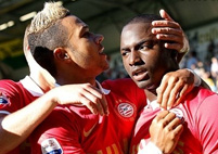 "Твенте" хоть и владел инициативой все 90 минут в матче с "Валвейком", но выглядел парадоксально невнушительно в игре против кандидата в явные аутсайдеры этого сезона. Уходы лидеров – Шадли, Дугласа, Фера не могут не сказываться на игре команды. А тут ещё и Тадича оставили на скамейке запасных. В основе же, особенно в атаке, появились совсем новые лица. Отметим отличную игру вратаря "Валвейка". "Твенте" имел больше моментов, но воплотить их в голы не сумел. Отличный стартовали в новом сезоне "Витесс" и "Гронинген". Арнемцы без ушедших лидеров Бони и ван Гинкеля не испытали проблем с "Хераклесом". К получасу игры своё преимущество "Орлы" воплотили в гол, который на свой счёт записал новичок Келвин Леердам после передачи Янссена. Спустя четыре минуты Педерсен увеличил преимущество своей команды. После перерыва был забит и третий мяч, благодаря усилиям Ренато Ибарры, который со второй попытки всё-таки пробил Пасвера. Гол престижа альмельцам забить всё же удалось, а провёл его в компенсированное время Мэттью Амоа. "Гронинген" сходу заявил о своих серьезных намерениях относительно этого сезона. Неплохо усилившись летом, "северяне" не оставили никаких шансов НЕКу на его же поле. Шери и Кирм довольно быстро взялись за дело, а во втором тайме их старания подхватили Тешейра и Живкович. У "Неймегена" единственный гол забил Фор, но вряд ли он может служить чем-то полезным, ведь крупного поражения избежать всё равно не удалось. Свои первые очки набрали новички Эредивизии "Камбюр" и "Гоу Эхед Иглс". Первые поделили очки в матче с "Бредой", а вторые обменялись забитыми мячами в поединке с "Утрехтом". |