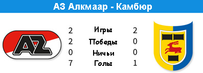 | Статистика встреч: 3-1-0 (11:3) | | Сезон 1999/2000 | | 22.02.2000 АЗ Алкмаар - Камбюр - 4:0 | | 26.09.1999 Камбюр - АЗ Алкмаар - 2:4 | | | | Сезон 1998/1999 | | 06.03.1999 АЗ Алкмаар - Камбюр - 3:1 | | 11.11.1998 Камбюр - АЗ Алкмаар - 0:0 | |