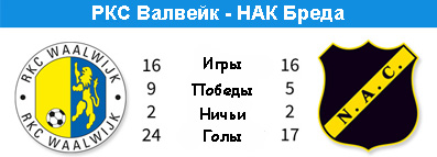 | РКС ВАЛВЕЙК - НАК БРЕДА | 1 ноября. Валвейк. Стадион "Мандемакерс". 23:00. Судья - Кевин Блом (Гауда). | | | В прошлом туре впервые с конца августа "Валвейк" набрал хоть какие-то очки во внутреннем первенстве, прервав шестиматчевую серию, состоящую исключительно из поражений. Причём удалось это сделать ни где-нибудь, а на "Амстердам Арене", отняв очки у самого "Аякса". Впрочем, особо радовать РКС вряд ли стоит, потому как турнирное положение этой команды обо всём говорит. С учётом первой победы "Неймегена", которая состоялась как раз в прошлый уикенд, "Валвейк" спустился на самое дно турнирной таблицы и судя по нынешнему состоянию, выбраться оттуда будет проблематично. После ужасного старта, "Бреда" выправила своё турнирное положение и по праву идёт в середине турнирной таблицы. Оформив пятиматчевую серию без поражений, в позапрошлом туре НАК уступил "Утрехту", однако это никак не сказалось на настрое команды Небойша Гуделя, которая уже в следующем туре в родных стенах камня на камне не оставила от "Гоу Эхед Иглс", отгрузив в ворота новичка элиты пять безответных мячей. В противостоянии "Валвейка" и "Бреды" на бумаге фавориты гости. Это можно сказать и исходя из результатов, ну и конечно нынешней игре команд. Впрочем, не станет удивлением и ничейный исход этой встречи, равно как и победа РКС, который, ещё раз напомним, не выигрывал с августа месяца. Единственную победу в нынешнем сезоне "католики" одержали в своём первом домашнем матче над "Витессом". Кстати, НАК в гостях имеет лишь одну победу, так что определённый оптимизм для хозяев эта встреча несёт в себе.