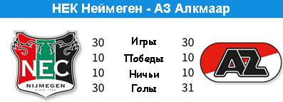 Замыкает колонну преследователей "Витесса" АЗ, и как раз шансы команды Дика Адвоката потеснить арнемцев с вершины выглядят наименьшими. В оставшихся до зимнего перерыва турах "Сыроварам" предстоит сыграть с "Херенвеном" и "Твенте" дома, что сулит возможную потерю очков. Но перед тем АЗ ещё сразится с "Неймегеном", который также способен подложить свинью. Тот факт, что НЕК занимает последнюю строчку в таблице, смущать не должен. Конечно, гелдерландцы не блещут в этом сезоне, но против АЗ даже в худшие времена НЕК ухитрялся показывать очень приличный футбол, регулярно отбирая у "Алкмаара" очки. Не следует также забывать, что неделю назад гости "Гофферштадиона" сами себе навредили, потеряв из-за дисквалификаций сразу двух игроков. И хотя вдевятером команда Адвоката героически отстояла ничью с "Родой", теперь Гуделя и Виргевера ей может не хватить, чтобы зацепиться за положительный результат в Неймегене.