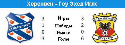 В игре против жутко нестабильного "Гоу Эхед Иглс" у "Херенвена" остаются шансы на победу даже без травмированного Альфреда Финнбогасона и дисквалифицированного Джоуи ван ден Берга. Хотя нельзя не учитывать возможного выстрела нападения "орлов" в лице Антония, Колдера и Хоуткопа, которые в канун двухнедельной паузы втроем разобрали крепкую "Роду". Однако сейчас у команды проблемы не только с кадрами, но еще и с психологией, если отталкиваться от ее последней встречи с "Витессом", подпорченной арбитром. И здесь есть два пути: либо футболисты до сих пор пребывают в депрессии, либо наоборот максимально заряжены на успех и горят желанием спустить пар как раз на подставившихся "фризах". У хозяев также в лазарете Нвофор и Фазли, а у гостей два дисквалифицированных, в лице Схенка и Тюрюка.