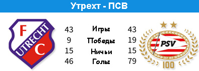 В былые времена "Утрехт" играл роль обычного поставщика очков для ПСВ - но сейчас все изменилось кардинальным образом. Говорить о проблемах "фермеров", признаться, уже порядком надоело, поэтому особого смысла в очередной раз перечислять все ошибки и недочёты гранда попросту нет. Команда уже вылетела из национального Кубка, на днях прекратила свое участие также и в Лиге Европы - теперь можно полностью сконцентрироваться на делах чемпионата. Тем более что руководство клуба по-прежнему сохраняет оптимизм и веру в тренера и в попадание в тройку призеров. Однако нет никаких предпосылок, что ПСВ прямо сейчас, с матча в Утрехте, начнет свой подъем, к тому же, коллектив Яна Воутерса дома ещё не проигрывал. Болельщики ПСВ уже заждались побед от своей любимой команды. Уже на протяжении семи туров эйндховенцы не могут добыть максимум очков в одном взятом матче. Следствием этого всего стало итоговое десятое место, которое команда Коку занимает по итогам 16-ти туров. "Утрехт" же сейчас на подъёме и имеет в активе серию из трёх побед кряду.