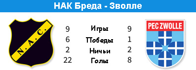 Гол Патрика ван Анхольта в концовке матча продлил неудачную серию "Зволле". Команда Рона Янса на протяжении четырёх туров терпит крах и на протяжении девяти не знает вкуса побед. Всё это выливается в падение по турнирной таблице. Уже сейчас "синие пальцы" находятся на двенадцатой строчке и всего в трёх баллах от зоны переходных матчей. В общем, после резвого старта сезона "Зволле" явно сдал. Кстати, в прошлом сезоне на этом же участке (к 19-му туру) команда тоже шла в этой зоне, а именно на 13 месте. Не всё гладко и у нынешнего соперника "синих пальцев". "Бреда" начала новый сезон с крупного поражения от АЗ Алкмаара. Сейчас в команде ещё и неприятный конфликт с ветераном Энтони Люрлингом, который уже едва ли не переходит в "Херенвен". В общем, атмосфера не самая радужная. Матч интересен, в первую очередь, тем, что друг с другом играют соседи по турнирной таблице, да и набранных очков у обоих коллективов поровну, а именно 22. В первом круге команды поделили очки, не порадовав публику забитыми мячами.