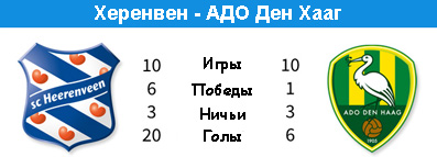 | Статистика встреч: 9-5-7 (32:21) | | Сезон 2013/2014 | | 04.12.2013 АДО Ден Хааг - Херенвен - 1:1 | | | | Сезон 2012/2013 | | 17.02.2013 АДО Ден Хааг - Херенвен - 2:1 | | 15.09.2012 Херенвен - АДО Ден Хааг - 1:3 | | | | Сезон 2011/2012 | | 03.03.2012 АДО Ден Хааг - Херенвен - 0:0 | | 29.10.2011 Херенвен - АДО Ден Хааг - 4:0 | | | | Сезон 2010/2011 | | 21.01.2011 АДО Ден Хааг - Херенвен - 3:1 | | 03.10.2010 Херенвен - АДО Ден Хааг - 0:0 | | | | Сезон 2009/2010 | | 30.01.2010 АДО Ден Хааг - Херенвен - 2:1 | | 31.10.2009 Херенвен - АДО Ден Хааг - 3:0 | |