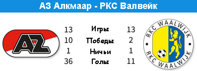 В заключительном матче тура сыграет теперь уже единственный представитель от Голландии в еврокубках АЗ. Команда Дика Адвоката по сумме двух матчей прошла чешский "Слован" и теперь сразится в 1/8 финала с махачкалинским "Анжи", а значит к "Алкмаару" будет приковано особое внимание со стороны российского футбола. Еврокубковые успехи - это конечно хорошо, однако во внутреннем чемпионате тоже надо подтягиваться к верхней части таблицы команде Адвоката, которая вот уже три тура подряд не знает радости побед, а в прошлом была разгромлена амстердамским "Аяксом" (4:0). "Валвейк" продолжает вести борьбу за выживание и после победы над "Утрехтом" (5:2), команда Эрвина Кумана потерпела два поражения. И если от "Витесса" оно было прогнозируемым, то проиграть прямому конкуренту "Неймегену" - это не может радовать. Зацепить очки в поединке с АЗ тоже будет весьма непросто, зато ключевым должен стать следующий тур, когда "католики" сразятся с "Ден Хаагом". Кто знает, может удастся добыть очки и в этом туре, как никак, а физическое преимущество на стороне гостей, которые не играли на неделе, в отличии от его соперника.