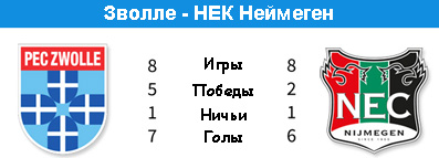 "Неймеген" зубами землю будет грызть, дабы выбраться из опасной зоны, а "Зволле" в то же время наверняка имеет виды на попадание в европейский плей-офф. Вот такая вывеска поединка между этими командами. "Зволле" в прошлом туре спасся в домашнем матче с "Хераклесом" благодаря голу вышедшего на замену Фурджела Нарсинга в компенсированное время. Родной брат Лусиано Нарсинга, футболиста ПСВ, наказал "Гераклов" за расточительство, ведь буквально за пару секунд до гола Линссен не попал в оставленные ушедшим на подачу углового Дидериком Буром ворота. Дотянутся до шестой строчки "синим пальцам" пока не удастся, а вот побороться с АЗ за седьмую вполне реально. "Неймеген" в прошлом туре оступился в родных стенах, уступив ПСВ. Это четвёртый матч НЕКа в сезоне, в котором команда не сумела поразить ворота соперника. Остаётся добавить, что в первом туре на выезде "Зволле" своего соперника размазал по газону.