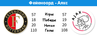 В текущем сезоне "Аякс" и "Фейеноорд" встречались уже дважды - в чемпионате и в Кубке - и дважды победа оставалась за столичной командой. Но тогда и местом встречи был Амстердам. Дома "Фейе" играет куда мощнее и собраннее, чем это было, к примеру, в его двух выездных встречах с "Бредой" и "Твенте". Да и матчи такого уровня не требуют дополнительной мотивации - сама вывеска говорит за себя. Сложно сказать, что происходит в стане "Аякса", глядя на его вылет по всем статьям из Лиги Европы, поэтому судить можно только по разнице между внутренним футболом и международным. Для голландских клубов это имеет огромное значение. Порой, они просто не могут переключиться с бесшабашной игры в Эредивизии на шахматные партии в еврокубках, что неоднократно приходилось наблюдать в течение не одного и не двух сезонов. Даже последняя внутренняя встреча "аяксидов" с АЗ говорит о том, что в Роттердам приедет совершенно иная команда, нежели мы с вами имели честь видеть в Зальцбурге. Тем более что некоторым игрокам Франк де Бур дал возможность отдохнуть и перезагрузить психологию - значит, ставка всё-таки сделана на чемпионат. Однако в кадровом плане далеко не всё так гладко. За последнюю неделю "Аякс" остался сразу без Шёне, Сереро, Бойлисена и Фишера, между тем как у "Фейеноорда" скамья штрафников и лазарет пусты. В некотором роде Рональду Куману даже повезло, что дисциплинарный комитет KNVB пощадил Грациано Пелле за его погромы в подтрибунном помещении "Де Гролс Весте" в Энсхеде в прошлом туре, наказав дебошира всего лишь штрафом в размере 5 тысяч евро. Настолько сильным был гнев форварда после упущенной победы над "Твенте".