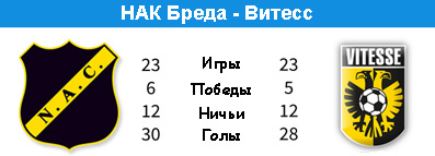 После пятиматчевой серии без побед, трехматчевой серии без забитых мячей "Витесс" уже дважды победил своих соперников, отгрузив им ровно по три мяча. Неужели на финише мы увидим прежний "Витесс" осеннего образца? Говорить пока об этом рано, хотя все признаки выздоровления команды Боша на виду. Стоит всё же помнить, что победы над "Валвейком" и "Родой", борцами за выживание, пока что никого не убеждают. Нынешняя "Рода" настолько убога, что в Арнеме сподобилась на целый один удар в сторону ворот, да и тот ушел в молоко. Все вопросы "Витесс" снял еще в середине первого тайма, когда Роли Боневасия был изгнан с поля за фол последней надежды, а Марко Вейнович вдобавок классно исполнил штрафной, сделав счет 2:0. Дубль от Майка Хвенара стал приятным подарком для посетителей "Гелредома". "Бреда" не проигрывает вот уже шесть матчей подряд, а значит "Витессу" предстоит серьёзно потрудиться, чтобы таки прервать эту приятную серию соперника. Впрочем, "крысы" преимущественно играют вничью, нежели добиваются побед. Всего их было две в этой беспроигрышной серии, а четыре других завершались ничейным исходом. В первом круге упорная борьба этих команд завершилась победой "Витесса" (3:2).
