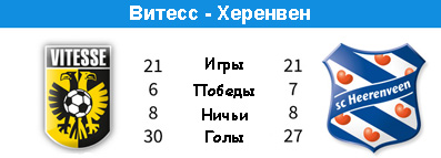 Очень интересно посмотреть на "Витесс" после его игрового коллапса, случившегося на прошлой неделе в Гронингене. Тогда оборона "орлов" гуляла сама по себе, а это напрямую сказалось и на нападении, которое за неимением надежного тыла вынужденно было отказаться от рискованного креатива. Сейчас в Арнем пожалует "Херенвен", команда ещё более крепкая, чем "Гронинген". И "Витессу" можно прогнозировать такие же проблемы, потому что ряды защитников за последнюю неделю поредели – капитан Гурам Кашия и самый результативный защитник "орлов" Келвин Леердам дисквалифицированы. Вновь нее исключен очередной сюрприз от Петера Боша сродни Вейновича в центре обороны. Одна радость: вернулся в строй Ренато Ибарра. Но это совершенно ничего не значит и уж тем более не дает никаких гарантий. У "Херенвена" же, пожалуй, последняя возможность попробовать ворваться в пятёрку сильнейших. Поражение от арнемцев точно поставит крест на этой задаче, а вот победа позволит "фризам" побороться в оставшихся турах. Да, задача всё равно будет очень трудной, но шансы возрастут. Совсем необязательной была ничья с "Неймегеном" на прошлой неделе, но это уже дела состоявшиеся, надо думать о том, что ждёт впереди.