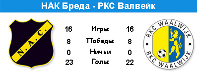 Этот матч, едва ли не самый главный в туре, поскольку обе команды вовлечены в гонку за выживание и соседствуют в турнирной таблице. Цена этой встречи тем выше, что в следующем туре обеих команд ожидают не самые простые игры с ПСВ и "Херенвеном". Поэтому, в личном противостоянии можно ждать осторожного футбола, ведь цена ошибки очень высока. Положение у "Бреды" лучше и её даже может устроить ничья, в то время как РКС обязан побеждать. Только в этом случае команда Эрвина Кумана нагонит своего соперника по очкам и уже в последнем туре окончательно решится судьба этих команд. Отметим, что в первом круге "Валвейк" разгромил своего соперника (3:0). А в прошлом сезоне НАК дважды праздновал победу 4:0 в гостях и 2:1 дома.