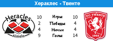 | Статистика встреч: 5-7-14 (27:47) | | Сезон 2012/2013 | | 05.05.2013 Хераклес - Твенте - 1:1 | | 14.12.2012 Твенте - Хераклес - 3:2 | | | | Сезон 2011/2012 | | 10.02.2012 Твенте - Хераклес - 2:3 | | 19.11.2011 Хераклес - Твенте - 1:1 | | | | Сезон 2010/2011 | | 19.01.2011 Твенте - Хераклес - 5:0 | | 14.08.2010 Хераклес - Твенте - 0:0 | | | | Сезон 2009/2010 | | 03.02.2010 Твенте - Хераклес - 2:0 | | 04.10.2009 Хераклес - Твенте - 1:3 | |