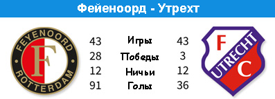 | Статистика встреч: 67-28-19 (234:118) | | Сезон 2012/2013 | | 17.03.2013 Фейеноорд - Утрехт - 2:1 | | 12.08.2012 Утрехт - Фейеноорд - 0:1 | | | | Сезон 2011/2012 | | 11.03.2012 Фейеноорд - Утрехт - 1:1 | | 11.12.2011 Утрехт - Фейеноорд - 2:2 | | | | Сезон 2010/2011 | | 10.04.2011 Утрехт - Фейеноорд - 0:4 | | 08.08.2010 Фейеноорд - Утрехт - 3:1 | | | | Сезон 2009/2010 | | 14.02.2010. Утрехт - Фейеноорд - 0:0 | | 22.11.2009. Фейеноорд - Утрехт - 0:0 | |