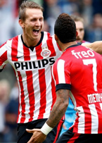 Начнём, конечно же, с лидера. ПСВ после успешного прохождения в групповой этап Лиги Европы дома принимал "Витесс". На неделе команда Филлипа Коку во второй раз обыграла солигорский "Шахтер", благодаря дублю своего лидера Мемфиса Депая, и пробилась в группу E. Соперниками ПСВ будут греческий "Панатинаикос", португальский "Эшторил" и московское "Динамо". Выйти из этого квартета эйндховенцам по силам в паре с нашим "Динамо", однако как всё будет на самом деле, говорить преждевременно. Пока же ПСВ набирает обороты во внутреннем первенстве. Впрочем, 12 очков из 12 возможных после четырёх туров не должны вводить в заблуждение. По игре к команде Коку не мало вопросов. Главным из которых из сезона в сезон остаётся игра в обороне. Впрочем, это проблема многих, если не всех, голландских команд. Обычно вопросы были к центральным защитникам эйндховенцев, однако сейчас пара Брума и Рекик не выглядят слабыми звеном, чего не скажешь о флангах. Йетро Виллемс ещё явно не набрал своих оптимальных кондиций и слева выглядит блекло, что объяснимо, ведь левый деф ПСВ совсем недавно оправился от тяжёлой травмы, из-за которой не попал на чемпионат Мира в составе Голландии. Не удивительно, что 90 минут Виллемс отыграть пока не может. Справа в обороне, по всей видимости, вновь нас ждёт борьба за основу между Джошуа Бренетом и Сантьяго Ариасом. Последний допустил не мало ошибок в игре с "Бредой", а потому Бренет второй матч кряду играл в старте, включая нынешний тур и прошлый с "Аяксом". Бренет, в отличии от Ариаса, менее активен в атаке, зато более надёжен при обороне. Интересно, что в игре с "Витессом" дебютировал Андрес Гуардадо. Мексиканец вышел с первых минут, но пока говорить об его оптимальных кондициях тоже рано. По-началу, он допускал брак под прессингом соперника, но затем вроде бы вошёл в игру, отметившись, кстати, ещё и жёлтой карточкой. Безусловно, адаптироваться к новым условиям ещё придётся. Ключевыми игроками ПСВ на данный момент являются капитан Вейналдум и бомбардир Депай. Первый регулирует всю игру в центре поля, отлично играя как в отборе, так и в атаке. Вообще, надо сказать, что чемпионат Мира пошёл Вейналдуму на пользу, за что он должен сказать спасибо ван Галю. Весь прошлый сезон Жоржиньо пропустил из-за травмы, однако, мудрый ван Гал всё равно взял его на мундиаль. Там Вейналдум заиграл в новых тонах, ведь ранее игра опорного полузащитника ему была не присуще. Ещё по "Фейеноорду" Вейналдума мы знали как игрока исключительно атакующего, а теперь у него есть навыки игры в обороне. Про Депая лишних слов уже говорить не стоит, все его видели на чемпионате Мира и его способности уже стали достоянием общественности. Это футболист, умеющий придержать мяч, обыграть, а самое главное пробить. Что-что, а удар у Депая знатный. Кстати, и в игре с "Витессом" он его продемонстрировал, когда мяч угодил в перекладину ворот. Начинает набирать былую форму и Лусиано Нарсинг, который был взят эйндховенцами из "Херенвена", но тоже долгое время просидевший в лазарете. Отправной точкой для Лусиано стал прошлый тур, когда он стал его героем, учинив поражение "Аяксу". Именно его отменная игра во втором тайме принесла ПСВ необходимый результат. Сначала он выступил ассистентом, а затем забил и сам. Должен свою карьеру приподнять и Люк де Йонг, который здесь в Голландии сделал себе имя, ког