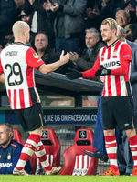 ПСВ завершил этот календарный год трудовой победой 3:2 над "Зволле". Ровно с таким же счётом команда Филлипа Коку сыграла на неделе в 1/8 финала Кубка Голландии, где выбила из турнира "Хераклес", а заодно и взяла реванш у альмельцев за поражение в чемпионате. Дважды дружина Коку была в роли отыгрывающейся стороны и оба раза с этой задачей справилась, причём во втором случае ПСВ играл уже в меньшинстве. Отметим, что теперь в четвертьфинале Кубка ПСВ сыграет с "Утрехтом". События в матче со "Зволле" развивались по-другому сценарию. Уже к 15-й минуте эйндховенцы вели с разницей в два мяча и, казалось, проблем возникнуть у них не должно. Нельзя не отметить шикарную игру Гастона Перейро. И если в первом случае он просто оказался в нужном месте в нужное время, замкнув дальнюю штангу после передачи Локадии, то второй гол - это плод его индивидуальных действий. Уругваец получил передачу от Прёппера и первым же касанием ушёл от опекавшего его Сэйнсбери. По сути, это касание и стало ключевым. Именно оно и вывело уругвайца на рандеву с голкипером, а уже вторым он послал снаряд точно в цель. В общем, разобрался мастерски, чего и говорить. "Зволле" же столкнулся ещё и с проблемой травмы, причём травмы голкипера. Кевин Бегуа испытывал проблемы с икроножной мышцей и продолжить встречу не смог. Отметим лишь, что вышедший Бой де Йонг в этом сезоне ещё ни разу не играл. Да что там в этом, у него не было игровой практики и в прошлом сезоне. Затем счёт стал 3:0 усилиями Люка де Йонга, однако судья ошибочно зафиксировал офсайд. 3:0 был бы приговором для "Синих пальцев". Впрочем, вряд ли кто мог предположить, что 2:0 не будет приговором по такой игре. А ведь не стал. В течении нескольких минут команда Рона Янса вернулась в игру. Да ещё как! Началось всё с неудачной игры Эктора Морено, который сыграл рукой в собственной штрафной после прострела с фланга. Пенальти чётко реализовал ван Полен. Но капитан "Зволле" на этом не остановился и спустя всего три минуты выдал гениальную передачу на Вельдвейка. Лучшему бомбардиру "синих пальцев" оставалось лишь хорошенько приложиться к мячу, что он и сделал, поразив ближнюю девятку. После перерыва ПСВ снова владел преимуществом. И здесь нельзя не отметить отдельно выход на поле Максима Лестьенна, который более девяти недель отсутствовал в расположении команды. Эту историю уже все знают. У Максима в течении нескольких недель ушли из жизни родители. И вот только в этой встрече бельгиец появился на поле с того момента. Последний раз он выступал против московского ЦСКА в первом их матче в ЛЧ, тогда, к слову, он отметился дублем. По иронии судьбы, именно Лестьенн и стал героем встречи. Нет, победный гол на счету Люка де Йонга, однако голевую передачу на капитана ПСВ сделал именно бельгиец.