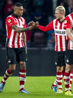 Начнём обзор с матча между ПСВ и НЕК, поскольку уже на следующей неделе в Лиге чемпионов с чемпионом Голландии сыграет московский ЦСКА. К этому поединку эйндховенцы подходят не в лучшем своём состоянии. Судите сами. Ещё неделей ранее из строя выбыл ключевой игрой середины поля Андрес Гуардадо. Сейчас мексиканец работает по индивидуальной программе и форсировать его возвращения никто не собирается. Действительно, уж лучше полностью восстановиться. Кроме того, в отчётном туре травму получил капитан команды Люк де Йонг и точные сроки его возвращения пока неизвестны. Там же в лазарете и Йетро Виллемс, отсутствующий уже давно. Конечно это всё не значит, что ЦСКА обойдётся без проблем. В конце концов у ПСВ уже есть победа над "Манчестер Юнайтед". За игрой эйндховенцев можно было наблюдать в недельном цикле, ведь в мид-уик игрались матчи 1/32 финала Кубка Голландии, где команда Филлипа Коку не без труда прошла "Камбюр". После первого тайма "фермеры" вели с разницей в два мяча и сами себе создали проблем. Всего в интервал трёх минут после перерыва "Камбюру" удалось отыграться. К счастью, ближе к концу был заработан пенальти, а автором победного гола стал как раз де Йонг. Сейчас очень важными фигурами в команде становятся Юрген Локадия и Максим Лестьенн. Именно от них исходит основная угроза в последних матчах. Само собой не забываем и де Йонга. Уже второй матч кряду, включая кубковый, Локадия выходит с первых минут и доказывает свою состоятельность. Доказывать действительно есть что, ведь в него долгое время не верили. Отметим, что Коку ротировал состав своей команды. Игровую практику в матче за Кубок даже получил второй вратарь Ремко Пасвеер. Возможность отдохнуть получил Прёппер, который в матче прошлого тура с "Хераклесом" оставил очень блеклое впечатление. Кроме того, в основу попал Стейн Схарс, наконец-то оправившийся от травмы. В перспективе он может играть не хуже Гуардадо, но сейчас говорить о оптимальных кондициях не приходится, ведь он пропустил очень много. Своё игровое время получил и Симон Поульсен. Датчанин в игре этого тура с НЕКом отыграл весь матч, в то время как Лестьенну была дана возможность отдохнуть перед игрой с ЦСКА и в этой встрече бельгиец отыграл только один тайм, причём второй, выйдя в перерыве вместо получившего повреждение де Йонга. Но всё же перейдём к игре. Надо сказать, что в последних матчах НЕК оставляет приятное впечатление. Отметим, что игра с ПСВ имела особое значения с той точки зрения, что сейчас НЕК возглавляет Эрнест Фабер, который был ассистентом у Коку в прошлом сезоне. Благодаря дублю Сантоса "Неймеген" выиграл на прошлой неделе у "Херенвена", а также пробился в следующую стадию Кубка. Отметим, что в обоих матчах команда Фабера не пропускала, победы 2:0 и 3:0 соответственно. Не тушевалась команда Фабера и в игре с чемпионом. Имела даже шансы на ничью. Конечно сбил карты первый пропущенный гол. С левого края мяч получил Нарсинг и нанёс удар по воротам. Исландский кипер НЕКа Хальдерссон отбил прямо на ногу де Йонгу, которому оставалось не промахнуться по пустым воротам. После перерыва "Неймеген" сумел сравнять счёт. Лимбомбе прокинул мяч к лицевой, а Ариас в подкате сбил бельгийца. Правда, нельзя не отметить и чересчур академичное падение игрока гостей. Тем не менее, фол со стороны колумбийца имел место быть. К
