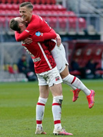 | Вот и пройдена точка невозврата. Пока ещё можно поставить вопросительный знак после фразы: «АЗ» короновал «Аякс», но это только из математических соображений. В центральном матче 27-го тура сошлись главные преследователи амстердамцев - ПСВ и «АЗ». И победителем в битве аббревиатур вышли футболисты из Алкмаара. Результат сделал шведский форвард Йеспер Карлссон, оформивший гол и голевую передачу. ПСВ чистым голом (попадание Дюмфриса отменили после вмешательства VAR) ответить не сумел и уступил со счётом 0:2. Теперь оба преследователя набрали по 55 очков и борьба за серебро будет ожесточённая, но золота им уже не видать. «Аякс» просто размазал по газону «Амстердам Арены» соперников из Гааги и оторвался на 11 очков. При этом, у команды Эрика тен Хага ещё есть матч в запасе, что при семи турах до конца чемпионата делает шансы преследователей ну просто мизерными. Уже не стоит говорить о чемпионской интриге в Эредивизи. Давайте лишь пронаблюдаем мощный рывок «Аякса». Ведь прекрасную форму демонстрируют подопечные Эрика тен Хага, сметающие всех на своём пути. Шесть побед подряд с общим счётом 18:1, четвертьфинал Лиги Европы, уверенное лидерство в чемпионате. «Аякс» нереально хорош. ПСВ, «АЗ» и «Витесс» робко разыграют серебро, а вот «Фейеноорд» похоже отваливается. Команда Дика Адвоката два тура кряду играет вничью с аутсайдерами и уже серьёзно отстаёт. А подробнее обо всех событиях двадцать седьмого тура самого «оранжевого» футбольного чемпионата вы узнаете в традиционном обзоре на ФНК.