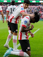 ПСВ в четверг взял реванш у лондонского “Арсенала” (2:0) и обеспечил себе одну из двух путёвок в плей-офф Лиги Европы. После того как брабантцы прервали впечатляющую беспроигрышную серию “канониров” Руд ван Нистелрой справедливо заметил перемену в настроении фанатов “крестьян”, скандировавших имя тренера, хотя после неудачи с “Гронингеном” (2:4) они отправляли ван Нистелроя в отставку… Через два дня на третий эйндховенцы принимали НЕК. Со скамейки у ПСВ начали не только Гус Тиль и Нони Мадуэке, но и Ибраим Сангаре, заслуживший интерес со стороны “Барселоны”. На острие “красно-зелёно-чёрных” был выдвинут номинально фланговый футболист Элайис Тавшан, а габаритный центрфорвард НЕКа Педру Маркеш так и не вышел на поле. Замысел Рогира Мейера с акцентом на скорость и мобильность в контратаках был понятен. Эйндховенцы предпочли не откладывать дело в долгий ящик, смяв гелдерландцев в первом тайме. Если не по результату, то по игре уж точно. Анвар Эль-Гази в касание вколотил мяч в “шестёрку” ворот Яспера Силлессена после зрячей подачи Коди Гакпо. Через минуту уже сам лидер “крестьян” угрожал воротам НЕКа, однако Силлессен в прыжке парировал мяч в сторону. Гакпо воскресным днём был полезен исключительно в роли ассистента. После прицельного кросса Коди в центр штрафной гостей Люк де Йонг продавил защитника и не оставил ни единого шанса другому бывшему футболисту “Барселоны” Силлессену. VAR помог Мартину Ван де Керкхофу определить, что капитан ПСВ забрался в офсайд. Это ничуть не расстроило де Йонга, хладнокровно пробившего с 11-метровой отметки после фола Филиппа Сандлера на жёлтую в собственной штрафной. В правый от себя нижний угол уложил мяч центрфорвард брабантцев, Силлессен угадал направление удара, но не дотянулся до мяча… Здорово вышел на замену Мадуэке. Нони с первой попытки не переиграл Силлессена, а спустя пять минут долго восстанавливавшийся от травмы британец отличился впервые с марта. Дубль из ассистов записал на свой лицевой счёт Коди Гакпо, который выбил уже 20 очков по системе “гол+пас” – 9+11! Перед финальным свистком арбитра из Утрехта Вальтер Бенитес проявил себя во всей красе, справившись с непростым ударом Ивана Маркеса с подбора. 3:0 – пребывающий на эмоциональном подъёме ПСВ подобрался вплотную к “Аяксу”. НЕК не может выиграть в Эредивизи уже на протяжении десяти туров…