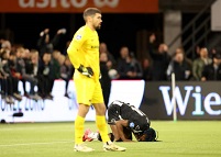 Вынесенный на мидвик 28-й тур Эредивизи очным матчем в Арнеме открывали футболисты "Витесса" и "Спарты". Игра на стадионе "Гелредом" показала, что крупная победа роттердамцев над "Фортуной" (4:0) не была разовой вспышкой. Клемент развернул вектор атаки гостей налево, откуда Сайто пустился в дриблинг, посеяв неразбериху в защитных рядах "орлов". Аркус неглядя выбил мяч точно на Сюнсукэ Мито, который вторым касанием с левой вколотил мяч в ближний угол ворот Элоя Рома! Оборона "Витесса" продолжала напоминать проходной двор, чем с удовольствием пользовались игроки в фиолетовом. На исходе стартовой 20-минутки Сайто грамотно поставил корпус и отдал мяч Пелле Клементу. "Восьмёрка" роттердамцев на ложном замахе отправил в буфет Хендрикса и расстрелял створ ворот Рома. Ложкой дёгтя для "спартанцев" стала травма набравшего приличную форму Лауритсена... После кросса Хадж Мусса от ближней бровки мяч свалился с ноги у звёздочки "орлов", и Ник Олей кончиками пальцев выручил южан рикошетом от перекладины. Перед уходом в раздевалку команды обменялись голами. Хендрикс в самоотверженном подкате помешал забить Бриму после прострела Версхурена, наступление "Спарты" продолжилось, и Коки Сайто прошил перчатки Рома после паса ван дер Кюста. Уже в добавленное к первому тайму время Хадж Мусса зряче навесил с углового на линию вратарской, и Кацпер Козловски, отклеившись от Эрдхайзена, пробил головой над руками Олея. Сразу после возобновления игры капитан "жёлто-чёрных" ван Гинкел дважды угрожал воротам роттердамцев после передачи Хадж Мусса. В первом случае гостей выручил Олей, а после повторного удара ван Гинкела мяч просвистел выше перекладины... Следом Ром сократил угол обстрела и расстроил планы Сайто после аккуратного перевода Версхурена. После перерыва Брим неимоверным образом не конвертировал в гол прострел Сайто, а через пару минут Мике Эрдхайзен продавил Аркуса после радиоуправляемой подачи Клемента со стандарта и вонзил мяч под перекладину! После личного просмотра спорных эпизодов на мониторе Эдвин ван де Граф отменил два пенальти в ворота "Витесса", а между двумя несостоявшимися 11-метровыми выше всяких похвал сыграл Олей, справившийся и с хлёстким ударом Эронсона, и с добиванием Виссера. 1:4 - "Спарта" во второй раз за четыре дня разгромила соперника, забив четырежды.