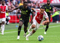 В центральном матче тура "Аякс" и "Фейеноорд" схлестнулись друг с другом на поле "Йохан Кройф Арены". В недавнем прошлом принципиальное противостояние Амстердама и Роттердама в спортивном плане уступало встречам "Аякса" против ПСВ, а теперь, видимо, в Нидерландах на первый план выйдут игры "Фейеноорда" с ПСВ. Очень уж неспокойно сейчас в стане "евреев" - спортивный директор "красно-белых" Свен Мислинтат находится в натянутых отношения с Морисом Стейном и призывает совет директоров как можно скорее уволить главного тренера "Аякса", а обновлённым амстердамцам пока критически не хватает сыгранности на всех участках поля... Команда Арне Слота, добившаяся успеха в стартовом туре Лиги чемпионов, фактически решила исход "Де Классикер" уже в дебюте. Гости в два паса довели мяч до Квинтена Тимбера, который в рамках правил оттёр от мяча Гаая и отдал проникающую передачу на Сантьяго Хименеса. Мексиканец расстрелял створ ворот Джея Гортера из убойной позиции. Вскоре Гаай грубейшим обрезом подарил мяч Хименесу, и центрфорвард "Фейе", убрав на замахе Хато, оформил дубль ударом с линии штрафной "евреев". Разбудить "красно-белых" пытался экс-прима "Фейеноорда" Стевен Бергхейс, который вывел амстердамцев на игру с капитанской повязкой. Тимон Велленройтер справился с обводящим ударом Бергхейса в дальнюю "шестёрку", а затем Бробби не хватило расторопности после прострела Боржеша. Под занавес тайма счёт на табло стал крупным после того как в завершении быстрой атаки "Фейе" Хименес не пожадничал, приплюсовав к дублю ассист на Игора Пайшао. Бразилец в касание носком поразил ближний угол ворот Гортера. Сразу после того фанаты "евреев" бросили файеры к воротам Велленройтера, Гэзюбююк остановил игру, а после перерыва ситуация повторилась, и арбитр был вынужден остановить матч согласно правилам Королевского футбольного союза Нидерландов. 0:3 - даже в случае доигровки "Аякс" может рассчитывать разве что на гол престижа и уход от позорного крупного домашнего поражения в "Де Классикер"....