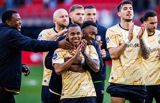 | Посреди недели были сыграны перенесённые матчи двух участников плей-офф еврокубков. Если "Фейеноорд" буднично разобрался с "Гронингеном" (4:1), то АЗ неожиданно оступился в домашней встрече против "Валвейка" (2:2). В очередном туре чемпионата Нидерландов на первый план вышел именно междусобойчик АЗ и "Фейеноорда", судьбу которого решил курьёзный автогол Бурмеестера. "Аякс" и ПСВ остались при своих на вершине таблицы, с идентичным счётом 3:1 обыграв НАК и "Гронинген" соответственно. "Утрехт" ушёл с 0:2 на 2:2 в гостях у "Гоу Эхед Иглс". После второй осечки за три последних тура утрехтцы отпустили "Фейеноорд" на расстояние одной победы. Считанные минуты отделили от набора трёх очков "Твенте", который пропустил гол от "Фортуны" в компенсированное время. "Херенвен" поднялся в зону еврокубкового плей-офф благодаря виктории над кризисным "Виллем II". "Спарта" практически закрыла вопрос по сохранению прописки в элите после уверенной победы над НЕК. Наконец, в подвале таблицы по одному очку дома набрали "Валвейк" и "Алмере Сити". Отставание брабантцев и флеволандцев от "стыковой" 16-й строчки сократилось до пяти очков. Подробнее обо всех перипетиях 28-го тура Эредивизи читайте в традиционном обзоре на ФНК. ![]() Фото - Getty Images. "Фейеноорд" накатывает на финиш В центральном матче тура в Алкмааре выясняли отношения футболисты АЗ и "Фейеноорда". В последнее время "сыровары" прослыли удобным соперником для роттердамцев, однако даже без ряда лидеров команда Маартена Мартенса готова была ужалить гостей. Другое дело, что игравший вторым номером "Фейе" был попросту эффективнее прямого конкурента. На исходе получаса игры Садик подхватил бесхозный мяч слева, вошёл в штрафную и хлёстко пробил в ближний угол. Мяч изменил направление рикошетом от ноги Траунера, к чему был готов Тимон Велленройтер. Спустя пару минут отошедший назад Зико Бурмеестер дрогнул под давлением Уэды, Пайшао навесил с левого края штрафной в сторону Миламбо, и Бурмеестер срезал мяч в дальний угол ворот Йеруна Зута... Во втором тайме мяч ещё дважды побывал в сетке ворот АЗ. Гол Хадж-Мусса не засчитали по причине офсайда, в то время как результативный удар свежего Каррансы отменили из-за фола в атаке. 0:1 - "Фейеноорд" закрепился на чистом третьем месте, в седьмой раз подряд взяв верх над АЗ. Волевая виктория "Аякса" и победа ПСВ на выезде НАК на старте сезона нанёс "Аяксу" первое поражение в чемпионате (2:1), а потому поединок на "Йохан Кройф Арене" ожидался с интересом. Домашний матч против "Бреды" начался обескураживающе для команды Франческо Фариоли. Уже на 9-й минуте игры подключившийся в атаку капитан "крыс" Ван ден Берг отпасовал налево Лео Зауэру. Вингер, права на которого принадлежат "Фейеноорду", сместился в центр, ушёл от Бергхейса и нанёс классный обводящий удар, не оставив шансов Матеусу! "Евреи" вырвались вперёд, забив дважды за четыре минуты. Сначала Рой Кортсмит на ровном месте привёз пенальти, повалив на газон юного Конаду. Кеннет Тейлор с "точки" развёл мяч и вратаря по разным углам. Автором победного гола стал Стевен Бергхейс, точному удару которого предшествовали передачи Тейлора и Конаду. Во втором тайме брабантцы тщетно пытались уйти от поражения. Матеус сложился, не позволив Зауэру оформить дубль, а затем ван Хоойдонк пробил головой по позиции стража ворот "аяксидов". В конце матча 17-летний Жорт