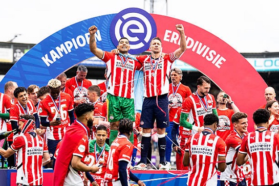 | Основной фокус в Нидерландах был направлен на стадион "Хет Кастел", где "Спарта" принимала ПСВ. Успех в Роттердаме гарантировал чемпионство команде Петера Боса, в то время как "спартанцы" были мотивированы борьбой за еврокубковый плей-офф. Перед началом матча чествовали капитана "Спарты" Ника Олея, которому вручили памятную рамку с футболкой с цифрой "100" на спине. Голкипер роттердамцев совершил восемь сейвов, что не стало преградой на пути ко второму подряд чемпионству ПСВ. "Аякс" всухую обыграл "Твенте", но тот же Вегхорст даже не праздновал поздний гол в ворота "красных", понимая, что трофей ушёл из под ног у амстердамцев... "Фейеноорд" любезно отдал три очка "Херенвену", ставшему последним участником еврокубкового плей-офф. Фризы сыграют против АЗ, который поделил очки с "Алмере Сити", не став убиваться против аутсайдера. Другим счастливчиком среди середняков стал НЕК, который на выезде сломил сопротивление "Хераклеса". В плей-офф за путёвку в Лигу конференций "красно-зелёно-чёрные" постараются пройти "Твенте". Единственные "нули" в туре были зафиксированы в Ситтарде, где мировую подписали "Фортуна" и "Утрехт". Антиподом стал матч в Валвейке, где "Валвейк" и "Гоу Эхед Иглс" на двоих наколотили сразу восемь голов в пропорции 5:3! "Зволле" после победы над "Гронингеном" совершил рывок с 13-го места на 10-е. Наконец, "Виллем II" хватило гола со стандарта, чтобы уйти от поражения в дерби с НАК. Клуб из Тилбурга сразится в плей-офф за право сохранить прописку. Подробнее обо всех перипетиях 34-го тура Эредивизи читайте в традиционном обзоре на ФНК. ![]() Фото - Getty Images ПСВ и "Аякс" синхронно победили с разницей в два гола В "золотом" матче ПСВ гостил у "Спарты". Лидер Эредивизи с первых минут закрепился на чужой половине поля и начал осаждать ворота роттердамцев. После броска Тилльмана из аута хозяева опрометчиво забыли в своей штрафной Перишича, мощный залп которого на "ленточке" остановил экс-защитник ПСВ ван Анхолт. На исходе стартовой четверти часа Дест разрезал оборону "спартанцев" пасом на Сайбари, пробившего в упор в голкипера "Спарты". Спустя минуту Дест проткнул мяч уже налево на Тилльмана, который не переиграл в ближнем бою Олея. Давление эйндховенцев увенчалось взятием ворот на излёте получаса, когда Мауро Жуниор подключил в атаку Боскальи, навес которого на дальний угол вратарской замкнул Иван Перишич. Вингер ПСВ сложился и "рыбкой" отправил мяч между ног первому номеру роттердамцев! Вскоре де Йонг оставил мяч Перишичу, после удара которого на исполнение Олей вытянулся в струну и парировал мяч на угловой. Стандарт привёл к кивку головой де Йонга, заставившего Олея выудить мяч из-под перекладины. Под занавес первого тайма "Спарта" огрызнулась: Зехиел с места правого полуфланга навесил на долговязого Лауритсена, выскочившего из-за спин Фламинго и Деста, - мяч разминулся рядом со штангой. Перед свистком на перерыв Перишич снова заходил на дубль, но штанга сыграла за Олея! Затем Вальтер Бенитес дважды за минуту вступил в игру, среагировав на удары Хлинссона и Лауритсена. В начале второй 45-минутки Тилльман картинно упал на газон после толчка Эрдхайзена, и Сердар Гэзюбююк занял сторону хозяев. Арендованный у "Фейеноорда" Дживай Зехиел восстановил статус-кво, воспользовавшись передачей вышедшего на замену Нассо. Эйндховенцы устремились в атаку большим чи