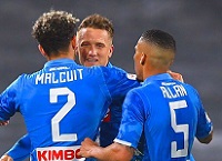 Казалось, ничего уже не нужно "Наполи" в чемпионате, и стремящийся в Лигу чемпионов "Интер" превзойдёт хозяев и в мотивации, и в движении. Однако на деле вышло по-другому. Команда Карло Анчелотти не собиралась "дарить" очки миланцам и учинила разгром сопернику. Хозяева играли на лёгких ногах и наказывали "нерадзурри" за ошибки в обороне. Свой первый момент в матче неаполитанцы создали уже на 3-й минуте, а на 16-й - открыли счёт. После обреза Квадво Асамоа у своей штрафной шикарным дальним ударом отметился Пётр Зелиньски. У "Интера" же поначалу мало что клеилось в атаке. Лишь незадолго до перерыва Лаутаро Мартинес отметился опасным ударом, но Орестис Карнезис отразил мяч ногой. На второй тайм у гостей вышел Мауро Икарди, и "нерадзурри" устремились вперёд. Но с этим давлением хозяева уверенно справились. И на 61-й минуте усилиями Дриса Мертенса упрочили своё преимущество. После этого "Интер" пошёл на штурм чужих ворот и создал два верных момента, однако Карнезис и Калиду Кулибали спасли свою команду. А вскоре контратака хозяев увенчалась голом Фабиана Руиса. Миланцы не сдавались, и через некоторое время лишь перекладина ворот Карнезиса остановила мяч после удара Мартинеса. Но "Интер" слишком увлёкся атакой и на 78-й минуте потерял мяч на своей половине поля, и всё закончилось вторым голом Руиса. Счёт стал совсем неприличным, и гостям всё же удалось его "размочить". Икарди заработал пенальти и сам затем его реализовал. Но большего добиться миланцы не смогли. "Наполи" одержал четвёртую победу подряд в Серии А, несмотря на отсутствие турнирных задач на финише сезона. "Интер" же после этого поражения опустился на четвёртое место - "Аталанта", сыграв вничью с "Ювентусом", обошла конкурента по дополнительным показателям. Идущий же на пятой строчке "Милан" отстаёт всего на балл от "нерадзурри". "Интер" ставит под сомнение своё участие в Лиге чемпионов. А в заключительном туре он будет противостоять сверхмотивированному "Эмполи", который сегодня разгромил "Торино".