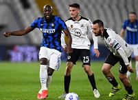 В игре 32-го тура Серии А “Специя” и “Интер” не выявили сильнейшего на поле стадиона “Альберто Пикко” – 1:1! В первом тайме “чёрно-синие” не были похожи на себя. Миланский суперклуб владел территорией, однако гости до поры создавали моменты исключительно со стандартов. В дебюте встречи новичок итальянской элиты вышел вперёд после точного удара Диего Фариаса. Занятно, что более “орлята” так и не пробили по воротам Хандановича. “Интеру” трижды не удалось забить после угловых, но равновесие на табло ещё до перерыва восстановил Перишич, замкнувший прострел Хакими. Во втором тайме лидер Серии А смотрелся на порядок солиднее. Дважды за хозяев сыграла стойка ворот после выстрелов Мартинеса, а незадолго до финального свистка Лукаку и Мартинес забили из “вне игры”. Таким образом, “Специя” продлила беспроигрышную серию в родных стенах до шести матчей. Вместе с тем в параллельной игре “Кальяри” добился победы, поэтому отрыв лигурийцев от зоны вылета сократился до пяти очков. “Интер” во второй раз за три дня сыграл вничью со счётом 1:1 на выезде. Даже такой результат позволил “нерадзурри” увеличить фору перед “Миланом”. За шесть туров до конца чемпионата преимущество команды Конте перед ближайшим преследователем составляет десять очков.