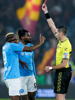 Очередной неудачный матч выдали действующие чемпионы Италии. «Наполи» под шефством Вальтера Мадзарри в гостях уступил «Роме». В первой половине заметно интереснее выглядели подопечные Жозе Моуринью, а особенно активничал Эдоардо Бове, который имел несколько отличных моментов, но реализовать их не сумел. Неаполитанцы на все это ответили эффектным, но не очень эффективным ударом пяткой от Замбо-Ангисса. В середине второго тайма произошел эпизод, который сильно повлиял на итоговый результат. Залевски прихватил Политано за футболку, после чего полузащитник «Наполи» пнул соперника и получил за это прямую красную карточку. Уже через десять минут «столичные волки» воспользовались численным преимуществом и открыли счет. Отличился удачно вышедший на замену Лоренцо Пеллегрини. Мог расставлять все точки над «i» Ромелу Лукаку, но гостей выручил Алекс Мерет. Ближе к концу встречи неаполитанцы еще и вдевятером остались. Вторую желтую карточку схлопотал Виктор Осимхен. «Рома» же в концовке забила еще раз усилиями Ромелу Лукаку и довела дело до победы со счетом 2:0. Команда Моуринью поднялась на шестую строчку в таблице.