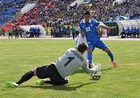 Открылся 5-й тур КПЛ южно-казахстанским дерби в Шымкенте, в котором сошлись местный "Ордабасы" и "Тараз". Команды стартовали в чемпионате весьма различно, и хозяева выглядели в этой дуэли фаворитами, однако команда Евгения Яровенко явно находилась на подъёме. В минувшем туре "Тараз" смог одержать свою первую победу в сезоне, и не над кем-нибудь, а над участником "золотой" гонки "Кайратом". Потому и в Шымкенте от дружины Яровенко вполне можно было ждать ещё одного сюрприза. Матч, как и ожидалось, получился весьма боевым. Однако атаки хозяев выглядели куда острее. Шымкентцы вполне могли выйти вперёд уже в дебюте встречи, однако Ренат Абдулин попал в перекладину. Тут же Еркебулан Тунгышбаев выстрелил рядом со штангой. "Ордабасы" продолжал давить, и незадолго до перерыва проявил своё мастерство Александр Григоренко, парировавший опасный удар Ивана Божича в ближний угол. Своего команда Виктора Кумыкова добилась в начале второй половины встречи. На 51-й минуте одинокий Тунгышбаев откликнулся в чужой штрафной на прострел с правого фланга и переправил мяч в "сетку" - 1:0. Выйдя вперёд, хозяева стали играть по счёту, уделяя большое внимание собственным тылам. "Тараз" пытался спасти поединок, но преодолеть чужие оборонительные порядки никак не мог. Финальный штурм также не принёс гостям успеха. "Ордабасы" добился третьей победы в первенстве и продолжает идти без поражений. Шымкентцы догнали в таблице лидирующую "Астану" и уступают ей лишь по разнице мячей.
