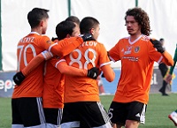 Поединок «Ордабасы» с «Окжетпесом» проходил параллельно. И в таблице, которую можно было отслеживать онлайн, шымкентцы долго шли третьими, поскольку со своей частью задачи справлялись уверенно. Уже на 4-й минуте они поразили ворота последней команды чемпионата. После передачи Зиги Бадибанга Жоао Пауло ворвался слева в чужую штрафную и прострелил на линию вратарской, откуда Сергей Хижниченко в касание переправил мяч в «сетку». Однако, пропустив, синегорцы перехватили инициативу. И вскоре Алексей Гаврилович в касание с левого края штрафной пробил в дальнюю штангу. На 39-й минуте счёт всё же стал равным. Тарас Бондаренко устремился в сольный проход через полполя. Он обыграл одного оппонента на входе в чужую штрафную, затем оставил не у дел ещё двух соперников, устоял на ногах и покатил мяч в ближний нижний угол. Правда, практически тут же Пауло мог снова вывести шымкентцев вперёд, но не реализовал выход с голкипером один на один. После перерыва «Ордабасы» серьёзно поддавил и добился своего на 56-й минуте после розыгрыша углового — Бадибанга головой поразил ворота с близкого расстояния. В концовке поединка синегорцы остались в меньшинстве, а на исходе компенсированного времени Пауло поставил точку в матче. Бразилец пронёсся по левому флангу и с линии штрафной уложил мяч точно в дальний угол. Таким образом, с 12 голами Пауло стал лучшим бомбардиром турнира. Но его «Ордабасы» финишировал вне еврокубковой зоны.