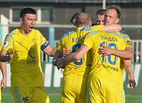 «Астана» Андрея Тихонова по-прежнему не знает поражений в чемпионате, вот только к 16-му туру лидер выдал серию из трёх ничьих подряд и позволил подобраться к себе поближе «Тоболу». Да и «Кайрат» вернулся в борьбу за высокие места. Столичной команде нужно было срочно возвращаться на победный путь. Но в соперниках у «жёлто-синих» был неуступчивый «Атырау», который в предыдущих десяти матчах потерпел лишь два поражения. «Нефтяники» обосновались в середине турнирной таблицы, однако были не прочь поставить подножку лидеру. Тем более, после поражения в «западном дерби» от «Актобе». А «Астана» отправилась в Атырау без травмированного Жарко Томашевича и дисквалифицированных Антонио Рукавины и Валерия Чуперки. В первом круге команды выдали сверхрезультативный матч (в котором «жёлто-синие» победили со счётом 6:2). Но на сей раз града голов не случилось. Хотя «Астана» открыла счёт уже на 4-й минуте. Абзал Бейсебеков выдал передачу через полполя на правому флангу на Томасова, Марин вошёл в штрафную и пробил в ближний нижний угол — 0:1. «Нефтяники» активизировались, вот только ничего создать впереди не могли. Лишь только один из угловых разыграли опасно, но затолкать мяч в створ не получилось — защитник вынес сферу с «ленточки». «Астана» же ещё до перерыва упрочила своё преимущество. На 35-й минуте Даниел Стойкович «подарил» мяч Роману Муртазаеву, который отпасовал направо на Томасова, и тот из-за штрафной из-под защитника закрутил сферу в дальний нижний угол — голкипер, замерев на месте, лишь проследил за её полётом — 0:2. После этого дубля на счету у Томасова стало 11 голов в чемпионате, и хорват упрочил своё лидерство в гонке бомбардиров. Затем Муртазаев едва не сделал счёт крупным, замкнув подачу Томасова с углового, но угодил в перекладину. В дебюте второго тайма гости поймали соперника на контратаке, и после прострела Энрике Лопеса Тигран Барсегян в подкате едва не переправил мяч в угол ворот. Перед этим едва не отличились «нефтяники», но выстрел Артака Дашяна с близкого расстояния заблокировал Петар Кунич. А затем у хозяев отметился дальним ударом Жан Мартинс, пославший сферу над перекладиной. На 62-й минуте Дашян с левого угла штрафной пробил низом рядом с ближней штангой. Но и у «Астаны» возникали моменты — Муртазаев после перерыва повторно пробил в каркас ворот, а перед этим едва не поразил ближний угол после прострела Томасова. На 84-й минуте вышедший на замену Владислав Прокопенко мог довершить разгром хозяев, но Мартинс не позволил залететь мячу в ворота. В итоге счёт больше так и не изменился. «Астана» одержала уверенную «сухую» победу и сохранила единоличное лидерство в турнирной таблице.