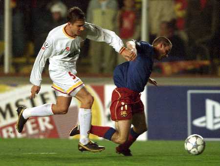 гарантировала Барселоне выход в следующий раунд. Галатасарай в первом тайме имел заметное преимущество, но гол Луиса Энрике на 58-й минуте принес гостям победу и прервал серию из 20 матчей Галатасарая без поражений в домашних матчах. Барселона финишировала с девятью очками на первом месте в группе В, опередив на два очка Ливерпуль, который со второго места вышел в четвертьфинал обыграв со счетом 2:0 Рому. В первом тайме турки владели преимуществом и дважды усилиями Хасана Шаша и Эмре Ашика могли повести в счете. А вот во втором тайме после удара Овермарса вратарь Галатасарая Мондрагон отразил мяч, но Луис Энрике удачно сыграл на добивании и забил победный гол. В оставшееся время Галатасарай большими силами шел вперед, но оборона Барселоны не допускала ошибок и сохранила свои ворота в неприкосновенности. "Мы были очень сконцентрированы и не допускали глупых ошибок как в прошлых матчах", сказал главный тренер Барселона Карлос Рексач. "Им повезло", сказал главный тренер Галатасарая