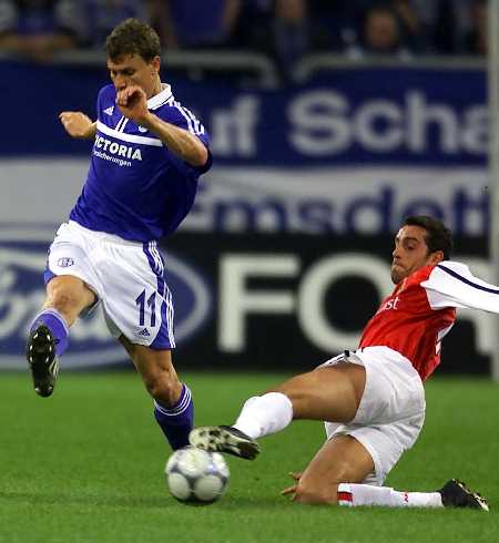 рассчитывать на третье место, которое дает путевку в Кубок УЕФА. Едва стрелка секундомера перевалили через полторы минуты от начала встречи, как Шальке открыл счет. Эббе Санд с левого фланга удачно прострелил на Мюлдера и голландский нападающий с близкого расстояния расстрелял ворота Райта. Хозяева продолжали доминировать на поле и на 9 минуте могли забить второй гол. Энди Меллер легко разобрался с Эшли Коулом и Санд промахнулся из выгоднейшей позиции. На 17 минуте произошел эпизод, после которого гостям и вовсе было очень сложно отыграться. Украинский легионер Арсенала Олег Лужный отметил свое возвращение из глубокого запаса красной карточкой за удар Йорга Беме. На 35 минуте Арсенал создал первый опасный момент у ворот соперника. Робер Пирес нанес мощнейший удар по воротам Река и вратарь с огромным трудом перевел мяч через перекладину. Во втором тайме Шальке 04 наращивал давление на ворота Арсенала и добился успеха. Сначала на 53 минуте был близок к дублю Мюлдер, а на 60 минуте Вермант забил таки второй гол. На 63 минуте Меллер коварным ударом с 18 метров довел счет до крупного, однако спустя 7 минут Вильторд с передачи Парлора сократил разницу в счете.