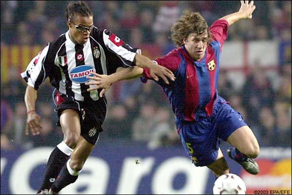 первых секундах едва не открыли счет, но не повезло Луису Энрике. На 2-й минуте после навеса Овермарса с близкого расстояния головой выше ворот пробил Савиола. "Ювентус" не отсиживался в обороне и отвечал острейшими выпадами, два из которых вполне могли завершиться взятием ворот. Сначала Ди Вайо выскочил один на один, но в последний момент поскользнулся. А затем Дель Пьеро с передачи Недведа ворвался в штрафную, но с трех метров пробил прямо во вратаря "Барселоны" Бонано. В середине тайма "Барселона" прочно завладела преимуществом. Массированные атаки соперника "Ювентус" отражал в большим трудом, получив в течении 12 минут три желтых карточки. На 35-й минуте в штрафной "Ювентуса" рукой сыграл Тюрам, но английский судья Грэм Полл не решился назначить пенальти. Впрочем не смотря на большое преимущество "Барселоны" гости в концовке тайма вновь отметились двумя голевыми моментами. На 37-й минуте Давидс с острого угла дважды бил по воротам, но великолепно сыграл Бонано. А на 42-й минуте после розыгрыша углового мог забить защитник Феррара. Едва начался второй тайм, как "Барселоны" создала самый опасный момент у ворот "Ювентуса". Луис Энрике оставил не у дел Монтеро и вышел один на один с Буффоном. Переполненные трибуны стадиона "Ноу Камп" уже закричали "гол!", но Луис Энрике не попал в створ ворот. Через шесть минут сработало известное футбольное правило и "Ювентус" открыл счет. Недвед с передачи Давидса ворвался в штрафную и из окружения защитников мощно пробил в ближний угол. На 57-й минуте вновь Недвед дальним ударом пробил в девятку, но на этот раз Бонано вытащил мяч из-под перекладины. "Барселона" отыгралась на 66-й минуте. Лилиан Тюрам вынес мяч из штрафной прямо на ногу Хави, которому удался хлесткий удар в угол, на который прикрытый защитниками Буффон среагировать не сумел. Через минуту второй гол мог забить Савиола, но пробил в сантиметрах от штанги. В дальнейшем "Ювентус" сумел сбить атакующий порыв хозяев поля и даже отметился двумя опасными штрафными ударами, которые неудачно исполнил Павел Недвед. А на 79-й минуте в середине поля на ровном месте глупое предупреждение получил Давидс. Эта карточка оказалась второй для голландского полузащитника и "Ювентус" остался вдесятером. Впрочем до конца основного времени "Барселона" не сумела воспользоваться численным преимуществом и не провели ни одной внятной атаки. В дополнительное время "Ювентус" всей командой держал оборону, а "Барселона"